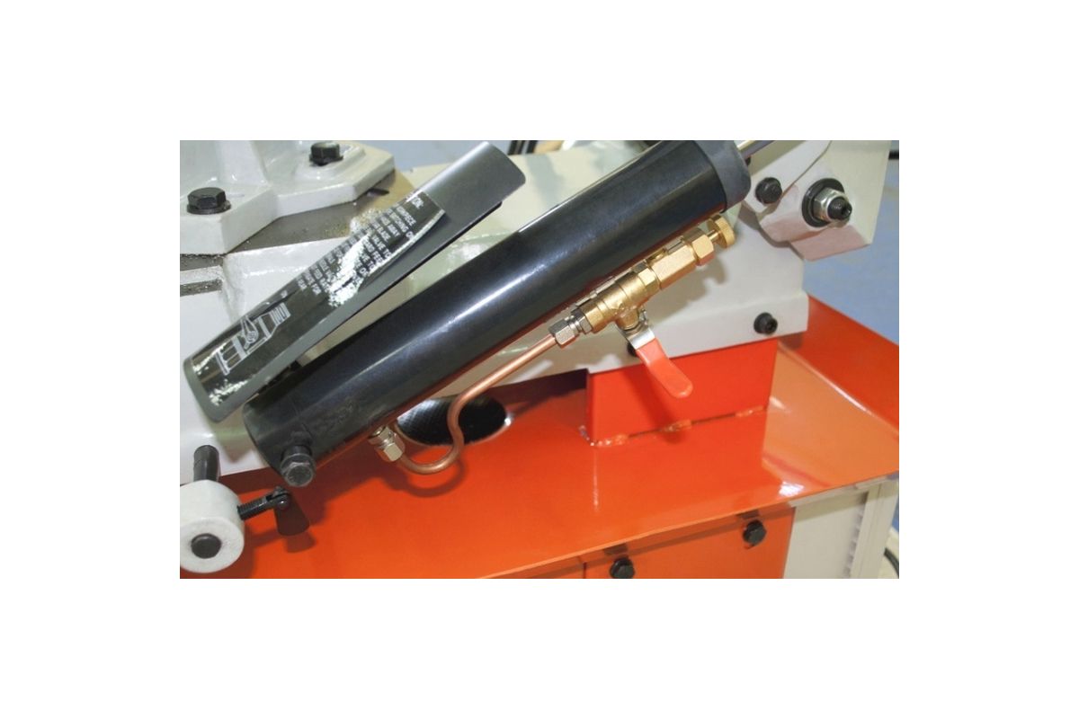 - Система СОЖ – охлаждающая жидкость подается к месту реза, это защищает пильное полотно от перегрева и продлевает срок его службы.