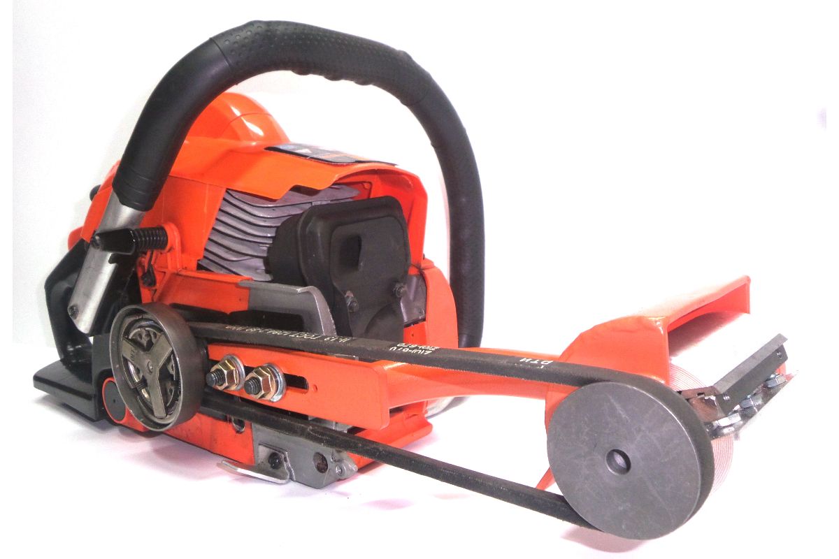 Применяется как насадка к бензопилам серийного производства (Stihl 170-250, Husqvarna 137-236 Partner 350-371, Husqvarna 135,140, Carver 25, 38, 45-52, Echo 3500, 352,353, для обработки бревен, брусков, досок. Выполняет операции по ошкуриванию бревен (удалении коры) фрезерованию пазов, чашек, придает плоскому бруску округлость. Вращение обеспечивается клиноременной передачей. Снижено передаточное отношение до величины 2:3.Вал установлен в корпусе на двух шариковых подшипниках. Барабан крепится с валом с помощью шпоночного соединения. Ширина строгания в зависимости от барабана 80мм и 100мм. Для установки кородера необходимо выполнить действия, изложенные в руководстве по эксплуатации