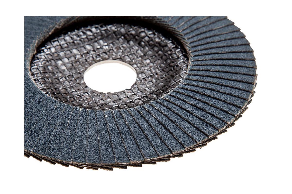 Профессиональный лепестковый тарельчатый круг SMT 626 Supra с ламелями из агрессивного циркониевого электрокорунда для шлифования изделий из стали, инструментальной и нержавеющей стали. Выпуклая форма 6 градусов для шлифования кромок, сварных швов, а так же для шлифования торцевых поверхностей и плоского шлифования.