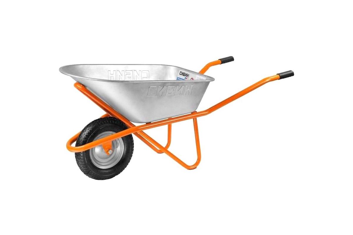 Стальной кузов толщиной 0,7мм и объемом 90л для сыпучих грузов имеет цинковое покрытие, обеспечивающее защиту тачки от внешних воздействий.