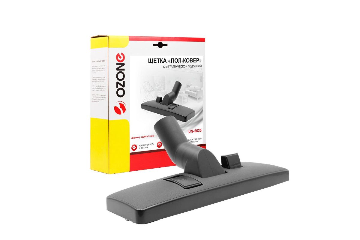 Насадка Пол-Ковер с двухсторонним переключателем и дополнительной вставкой для сбора волос и шерсти для бытового пылесоса, 1 шт. Длина рабочей зоны 300 мм, металлическая подошва. Подходит для пылесосов с диаметром удлинительных трубок 35 мм, бренд: OZONE, арт. UN-5635