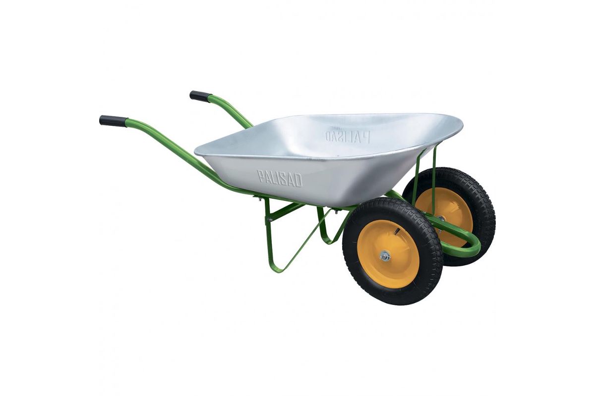 Тачка для перевозки различных грузов, в том числе строительных материалов.Рама окрашена порошковой эмалью, диаметр трубы 32 мм., толщина стенки 1,5 мм.Упор обеспечивает удобство при разгрузке.Кузов изготовлен из оцинкованной стали толщиной 0,7 мм., имеет закругленные борта.Опоры кузова обеспечивают большую грузоподъемность.Тачка комплектуется двумя пневматическими колесами с камерами, что придает ей дополнительную устойчивость.Наличие двух шариковых подшипников в колесе обеспечивает более легкое перемещение.Диск колеса сварной.