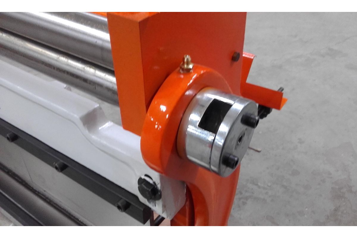 Вальцы имеют трёхваловую конструкцию, верхний вал консольно отводится в сторону для быстрого съёма обечайки.