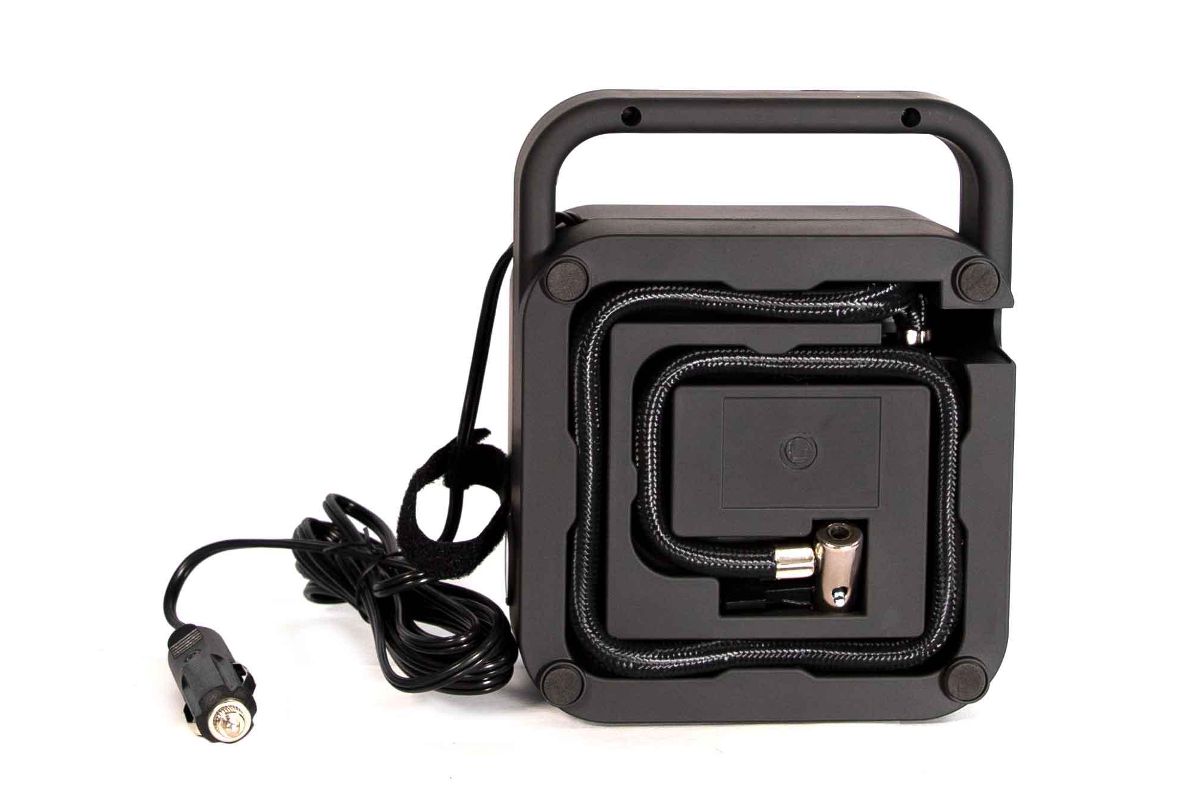 Компрессор удобно и быстро подключается к аккумулятору автомобиля через гнездо прикуривателя.