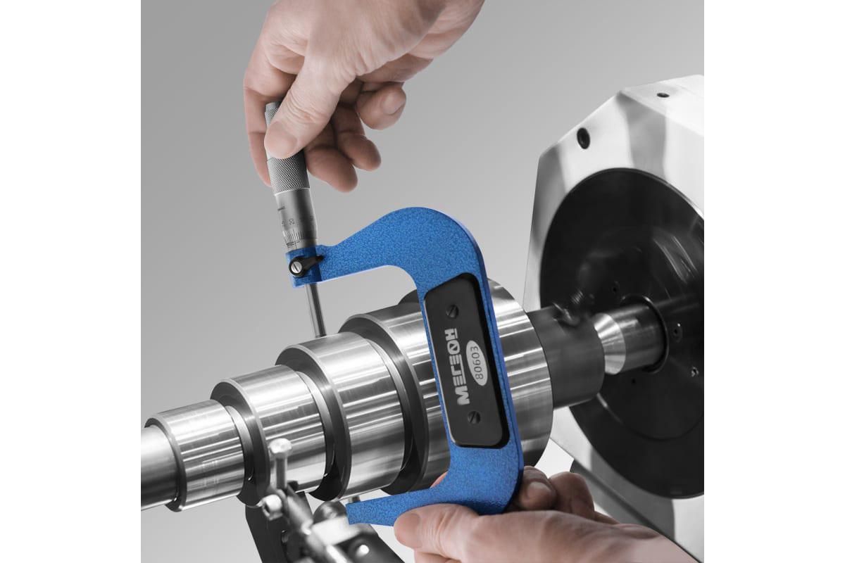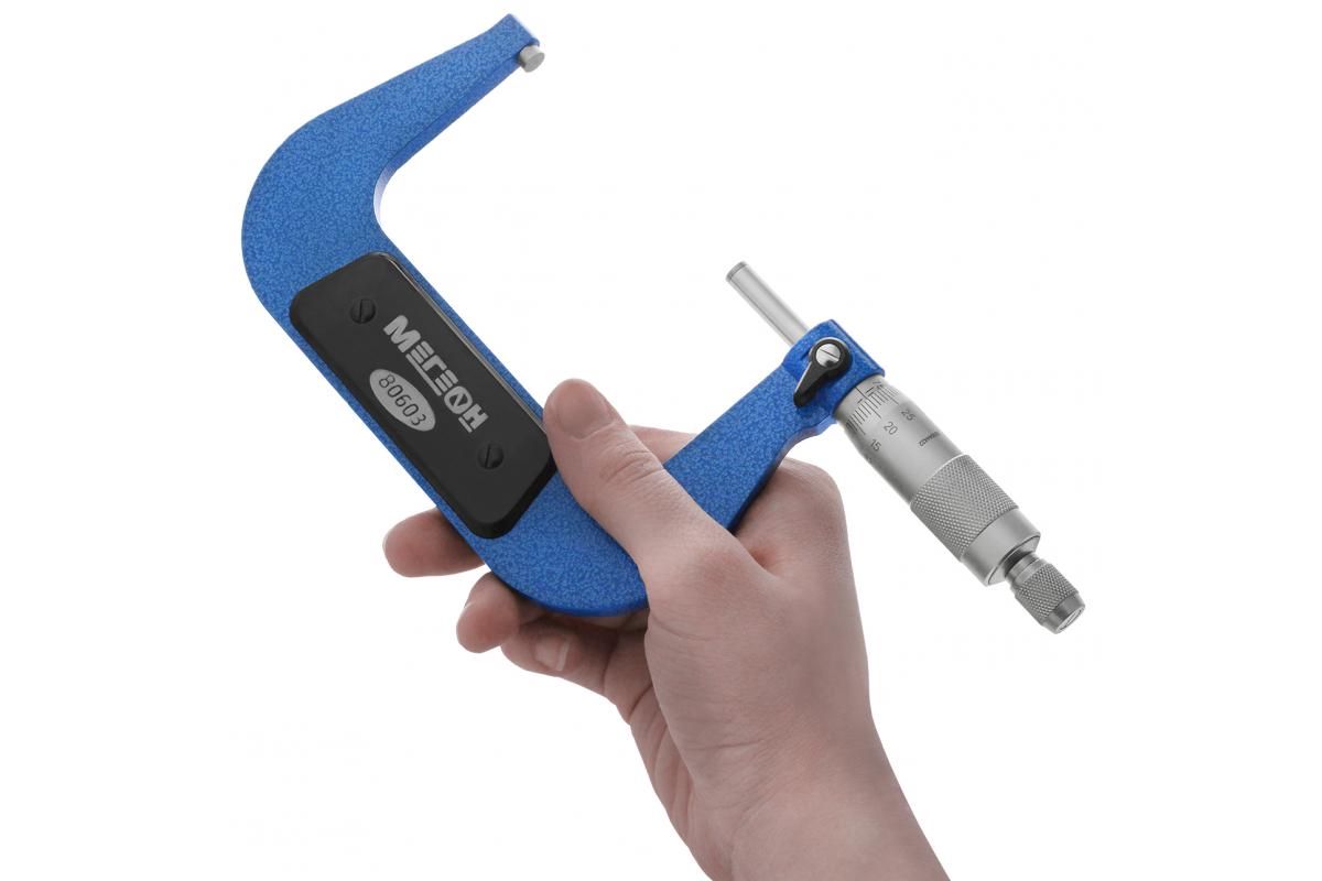 МЕГЕОН 80603 – новинка в модельном ряду классических микрометров высокой точности измерения. Представленная модель позволяет проводить замеры деталей в диапазоне 75 ... 100 мм с погрешностью не более 0,01 миллиметра. Для точной установки нуля в комплекте поставки предусмотрена установочная мера. Измерительные поверхности имеют твердосплавные напайки, что в свою очередь является признаком качества инструмента. Скоба обработана молотковой краской с высокими показателями сопротивления к сколам и царапинам. Дополнительно в местах касания пальцев установлена теплоизоляционная накладка с внешней и тыльной сторон. Для изготовления всех элементов конструкции была применена качественная инструментальная сталь. Проскальзывание пальцев исключается благодаря сетчатой накатке, нанесённой на барабан и трещотку. Предотвращение повреждений во время транспортировки и хранения обеспечивается ударопрочным футляром.