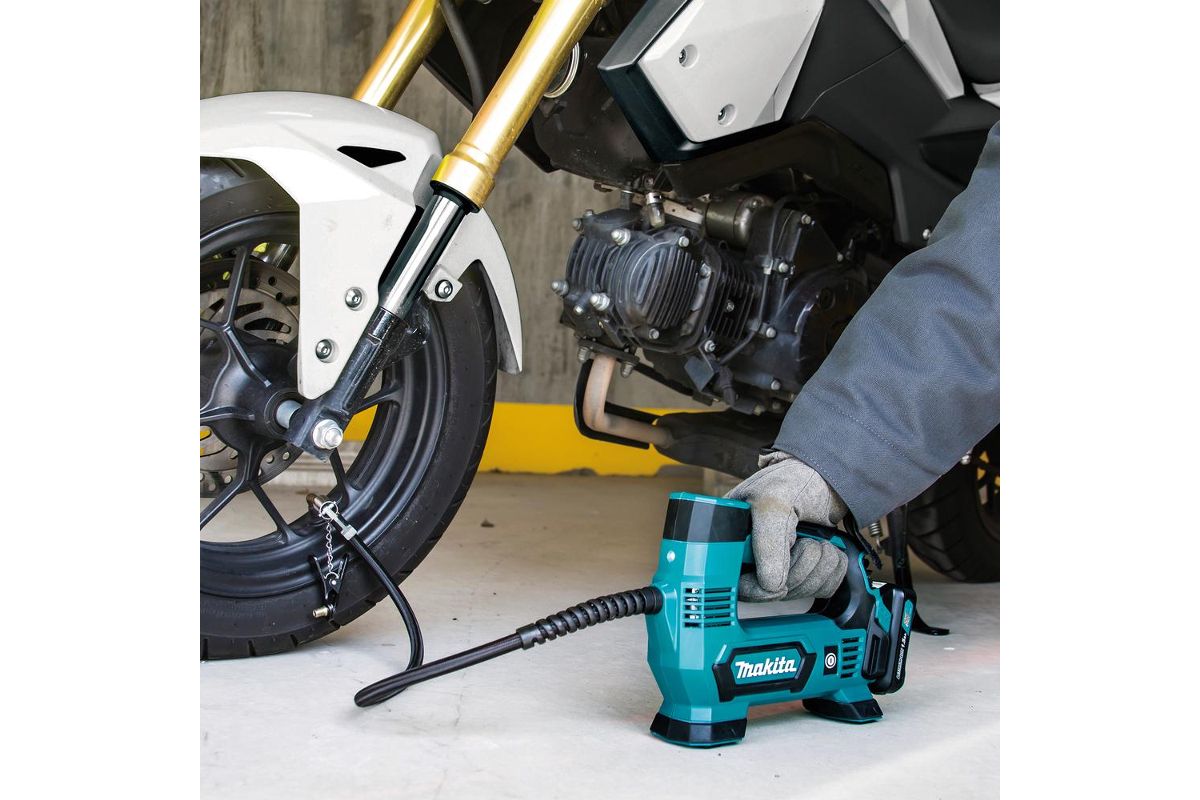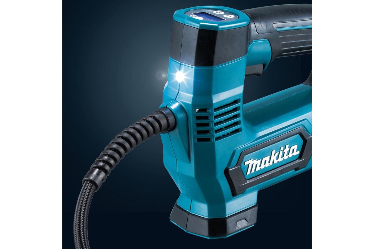 Насос для накачки шин автомобилей и велосипедов. Имеет небольшие размеры, что упрощает транспортировку. Устройство автоматически прекращает накачивание, как только достигается нужный уровень давления воздуха.