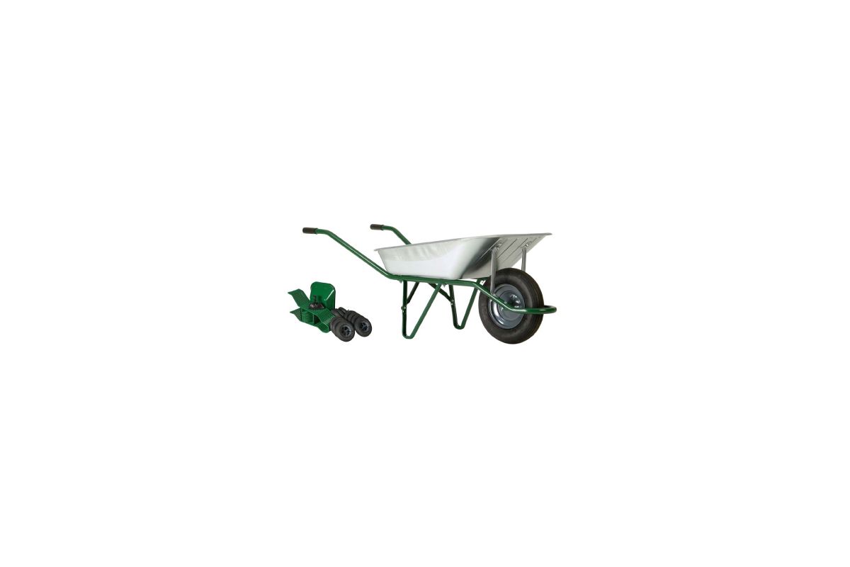 Одноколесная тачка с оцинкованным корытом для легких строительных работ.